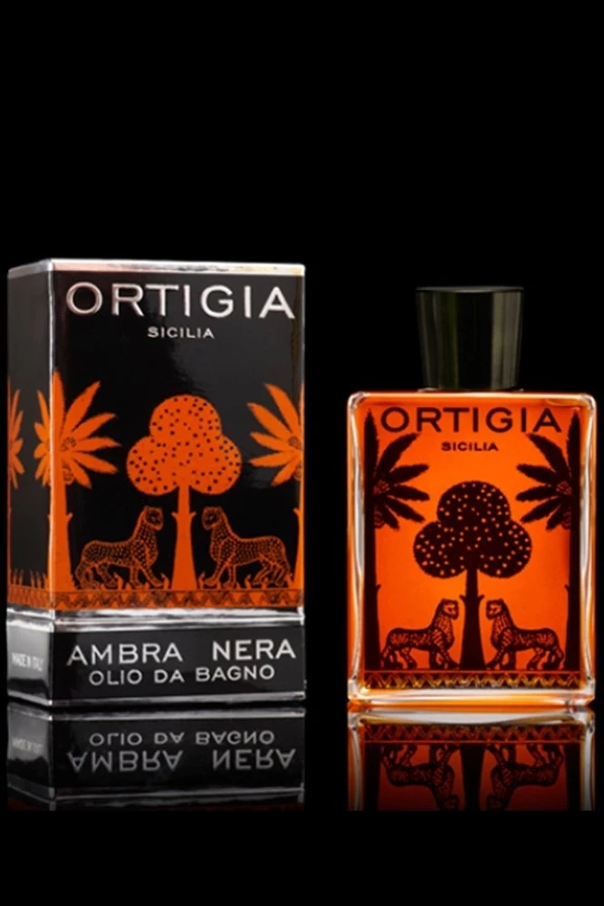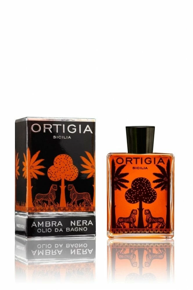 Ortigia Ambra nera Bath oil 200ml Natural oils Olive and castor seed Spices and musk of amber perfume Dissolves in water Moisturizes skin Fills room with exotic aroma 16366 Perfect for an ultimate relaxing bath time after a hard day at work, the Ortigia Ambra Nera Bath Oil. This extraordinary Bath Oil is filled with magnificent combination of olive and castor seed natural oils as well as the spice and musk of amber perfume. The Ortigia Ambra Nera Bath Oil dissolves when poured into a hot steaming running bath and will leave your skin feeling completely refreshed and wonderfully moisturized. This luxurious bath oil is packaged in the most incredibly designed illustrative packaging making this product an amazing gift. Not only will the Ortigia Ambra Nera Bath Oil leave your skin feeling magnificent, but the room will be filled with a delightful exotic aroma.