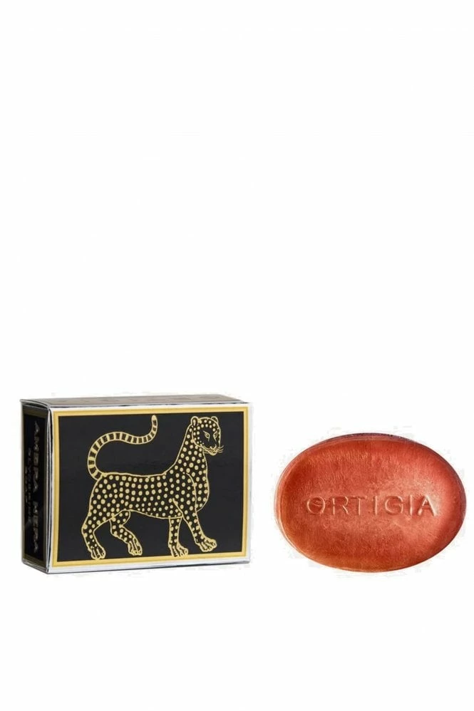 Ortigia Ambra Nera Single Soap Pure vegetable glycerine Wonderfully translucent Naturally coloured Exotic scent Spicy and warm Perfumed with a rich aroma Musky amber and spice Warm and inviting fragrance Beautiful illustrated packaging 40g 32019