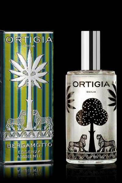 An aromatic spray for the home by Sicilian brand Ortigia. Spritz into the air, on fabrics, linens and textiles to infuse the room with fragrances of Bergamot Distincly Sicilian, green and strong. The essential oil is derived from the crushed leaves and zest of the bergamot orange tree.
