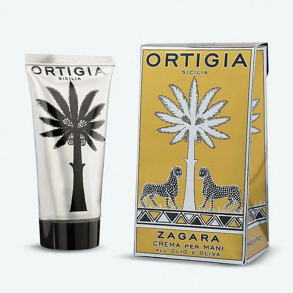 Rich and nourishing hand cream, scented with Orange Blossom and fragrant WoodsMade from natural ingredients: olive oil, almond oil, beeswax, lanolin, jojoba and aloe – The perfect answer to dry hands due to constant washing. 80ml Ortigia is a small Italian soap and scent company founded in Sicily in 2006 by Sue Townsend. The luxurious ranges of soaps, scents, creams, candles and lotions are formulated using natural products indigenous to Sicily and inspired by the aesthetics, colours and scents of Italy’s most historic and tropical region.