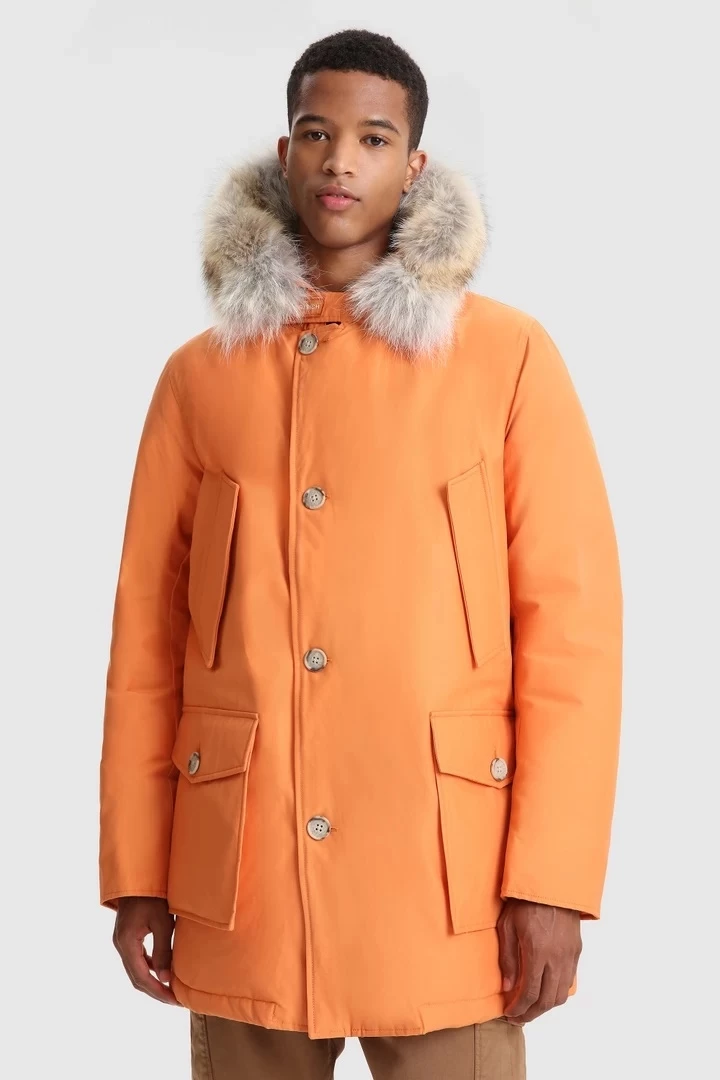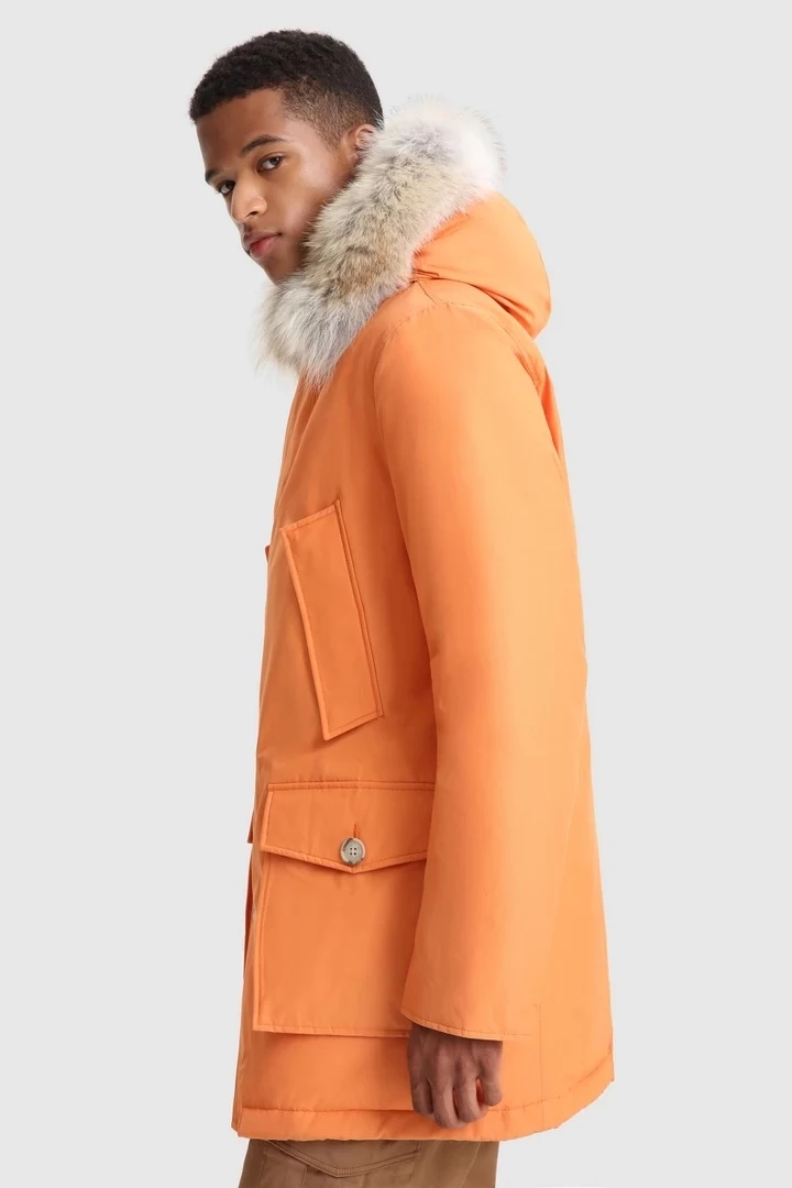 La primera parka Arctic de Woolrich se presentó en 1972 con el objetivo de proteger a los trabajadores del oleoducto de Alaska en los duros climas árticos. Siguiendo los pasos del rico legado de la marca, esta parka Arctic DF de hombre está confeccionada en nuestro tejido ramar y reforzada con una capa de teflón resistente al viento y al agua. Cuenta además con un relleno de plumón de pato con aislamiento natural que garantiza una gran calidez. Está coronada con una amplia capucha a la que no le falta un borde de piel extraíble que se puede ajustar según el tiempo. Diseño proveniente directamente de los archivos. Confeccionado en tejido ramar obtenido de una mezcla de algodón orgánico y nylon reciclado. Revestimiento de teflón resistente al viento y al agua. Aislamiento grueso con plumón de pato 80/20 y capacidad de relleno 700. Totalmente forrada para una mayor comodidad. Capucha de protección con borde extraíble de piel de coyote. Cierre con cremallera y botones. Bolsillos calientamanos. Amplios bolsillos de parche con solapa. Etiqueta con el logo Buffalo Check. Temperatura: -10 C°/ -20 C°.
