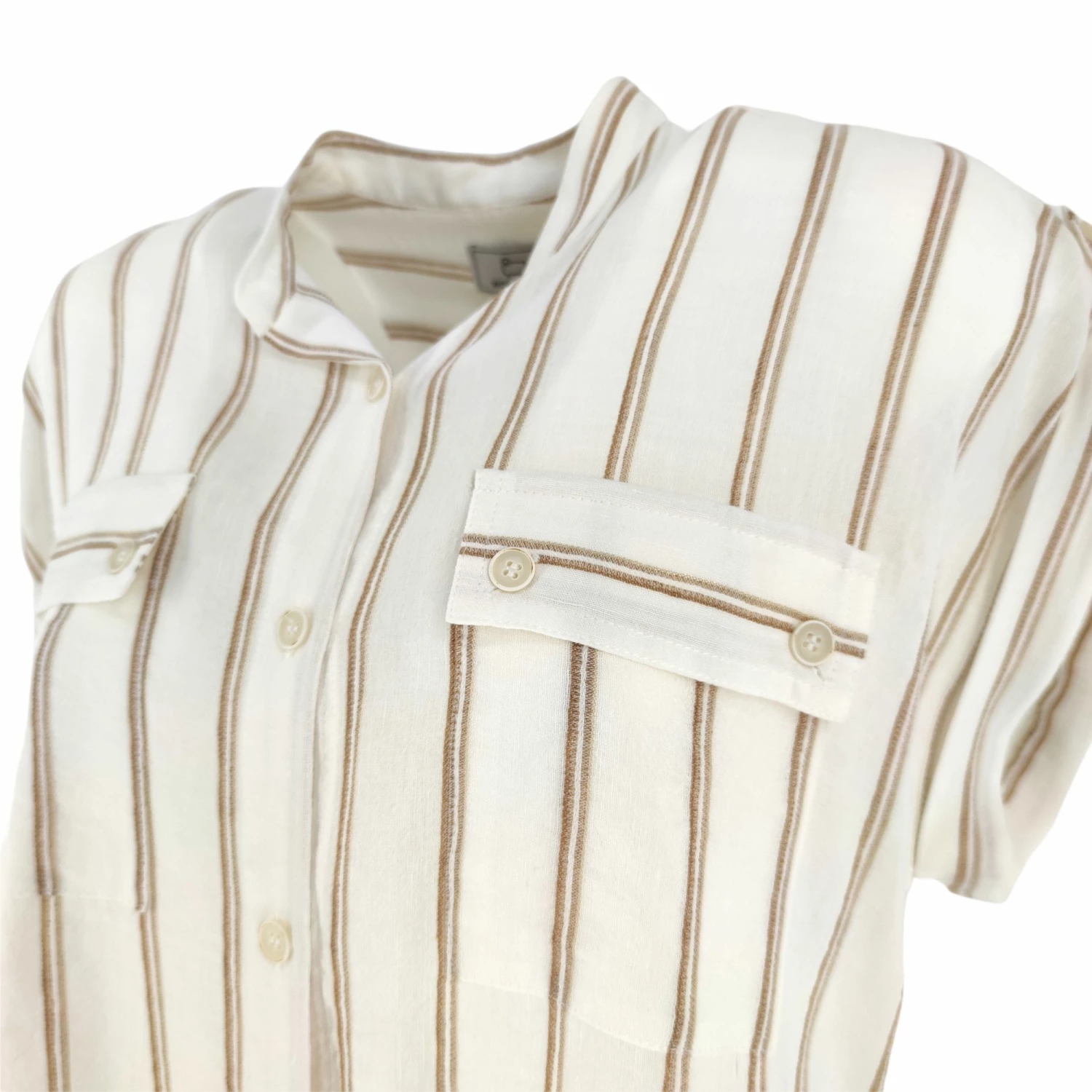 Leggera miscela di lino 56%, viscosa 39% e 5% acetato colletto a fascia sottile Chiusura con bottoni due tasche frontali con bottoni Maniche corte con bordino Etichetta con logo Buffalo Check sul lato.