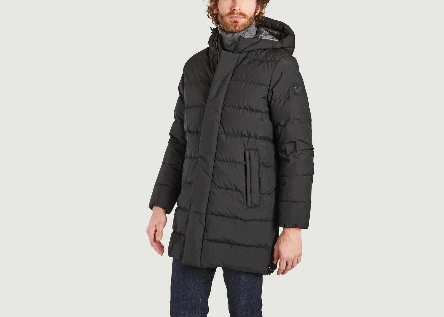Long jacket made of Gore-Tex® Infinium polyester and insulated with 90/10 duck down. It features a protective hood, concealed front closure with internal storm flap, two welt pockets with zippers, and a side zipper for added freedom of movement. The GORE-TEX membrane is a very thin layer of expanded polytetrafluoroethylene with more than 1.4 billion microscopic pores per square centimeter, bonded to an outer fabric and, in many cases, a lining. The Gore-Tex® technology makes this down jacket extremely durable and offers complete protection from the elements. Ideal companion for the harsh winter ahead !