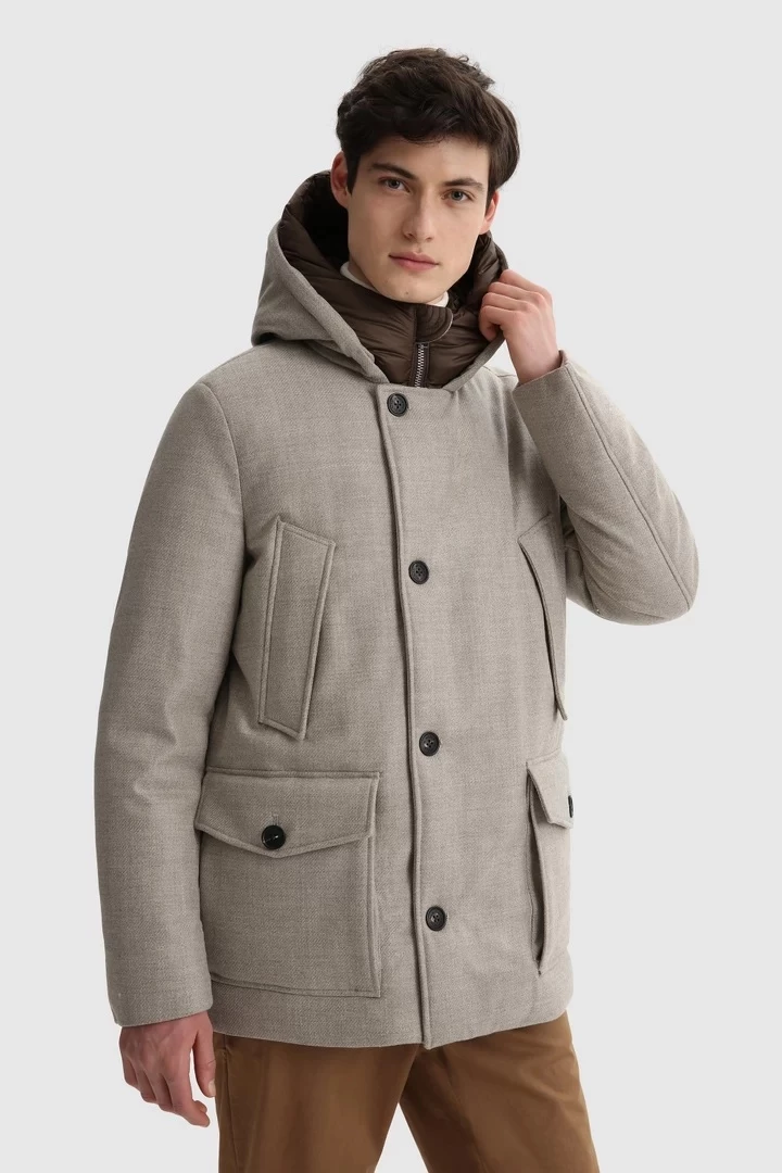 Lujosa, versátil y con la resistencia ideal para las aventuras al aire libre durante todo el día, la parka de lana ecológica Arctic Luxury para hombre es una inversión inteligente que usarás ahora y en las temporadas venideras. Inspirada en la icónica parka Arctic de Woolrich, la icónica silueta está confeccionada en exclusiva lana ecológica Blacksheep con un tratamiento especial resistente al viento y al agua, fabricada por la marca de lujo italiana Loro Piana. Con relleno de plumón de pato naturalmente aislante, presenta una serie de bolsillos funcionales y características que aumentan la comodidad para mayor practicidad. Confeccionada en exclusiva lana ecológica Blacksheep con un tratamiento especial resistente al viento y al agua, fabricada en Italia por Loro Piana Con un acolchado aislante de plumón de pato 90/10 Capucha de protección Cierre con cremallera y botones Bolsillos para calentar las manos Amplios bolsillos de parche con solapas abotonadas Placa metálica con el logotipo en la parte delantera Parche con el logotipo característico en el brazo izquierdo Temperatura: Relleno semiligero 0 C°/ -10 C°