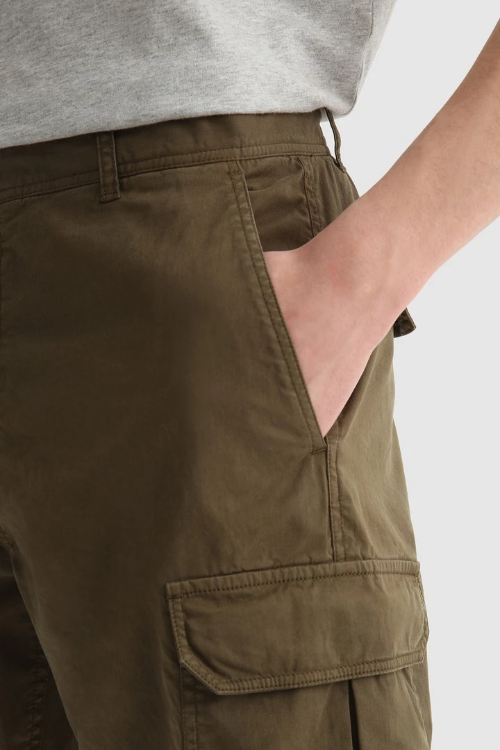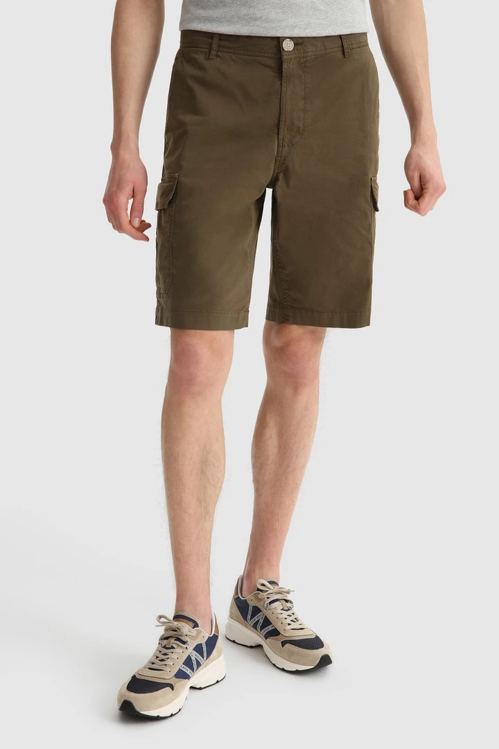 La estética y la funcionalidad forman parte por igual del ADN de Woolrich, tal como demuestran estos pantalones inspirados en la ropa de trabajo. La depurada silueta hasta la rodilla está confeccionada en puro algodón, naturalmente transpirable y teñido en prenda para mayor intensidad del color y suavidad al tacto. Equipados con un total de seis bolsillos, han sido diseñados pensando en un verano colmado de acción. Puro algodón teñido en prenda para mayor suavidad e intensidad del color Cintura con trabillas Bolsillos laterales diagonales Bolsillos traseros ribeteados Amplios bolsillos de tipo cargo en los laterales