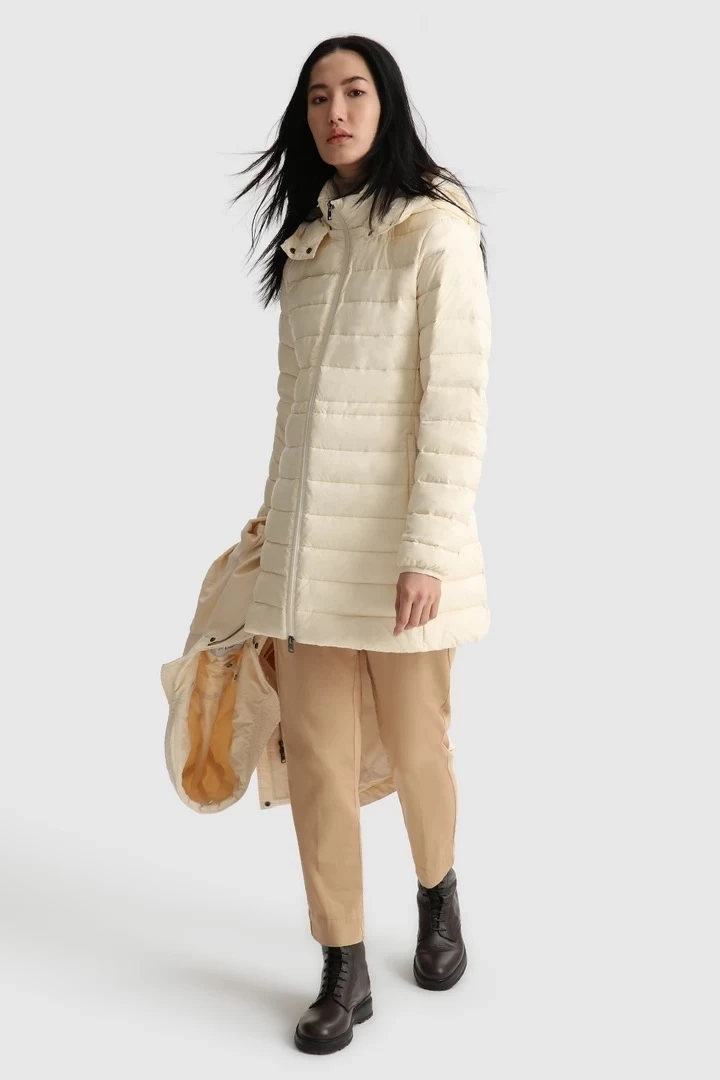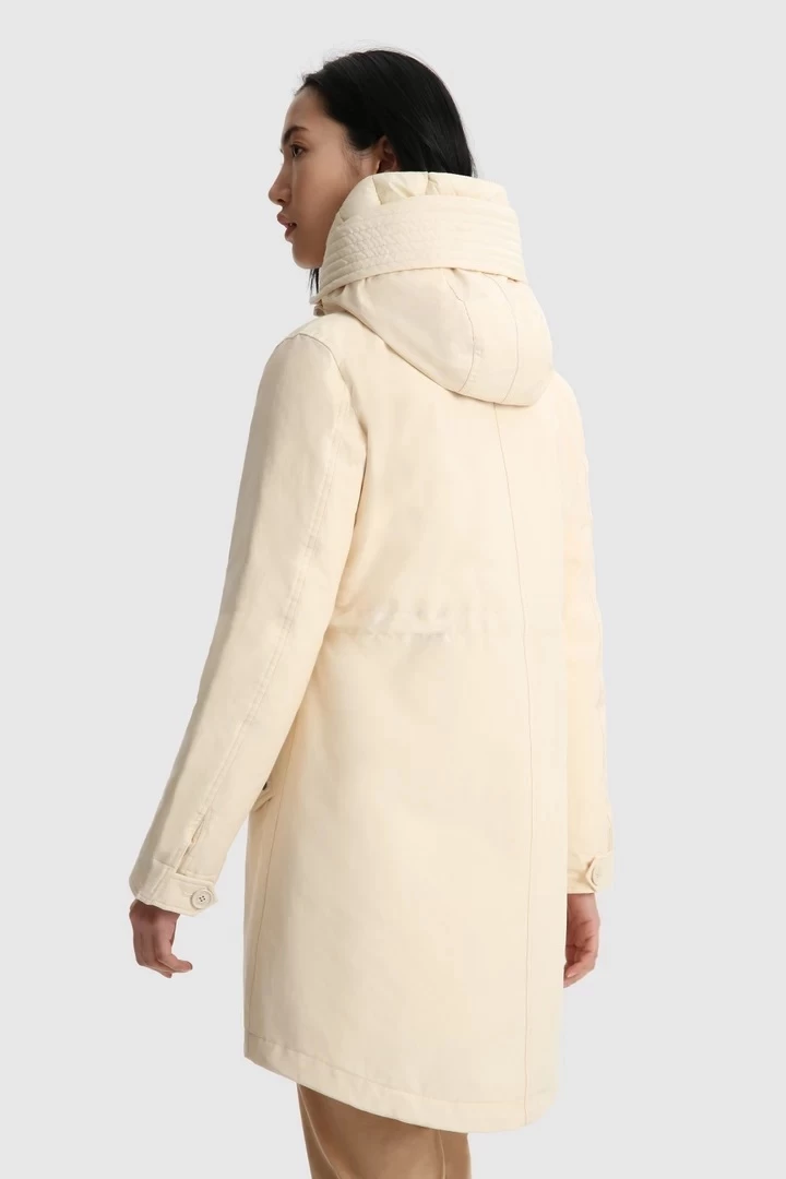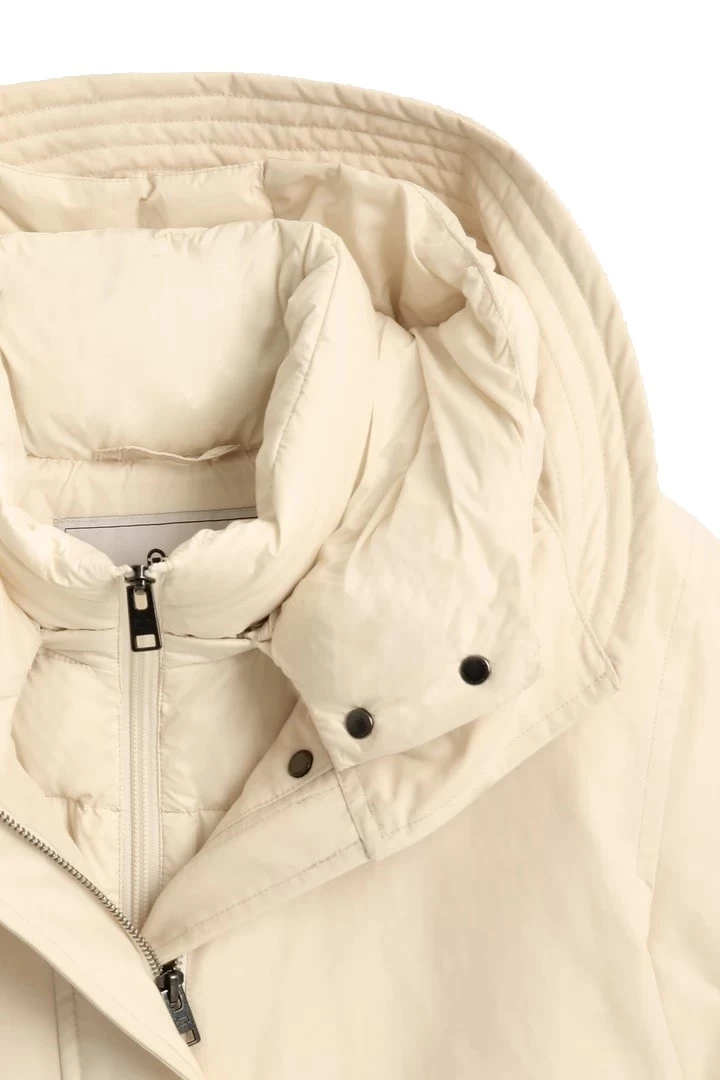 Lo último en comodidad para el frío, la parka larga Military 3-in-1 para mujer destaca por su atractivo duradero y su moderna versatilidad. Su ingeniosa construcción presenta una capa externa, fabricada con nuestro característico tejido Ramar resistente al viento y al agua, y un forro acolchado desmontable que puede llevarse por separado. El cordón interior que define la cintura garantiza un ajuste favorecedor, mientras que el dobladillo ligeramente redondeado, el cierre frontal oculto y los amplios bolsillos son prácticos y elegantes. Confeccionada en Eco Ramar Resistente al agua y al viento Con un acolchado aislante de plumón de pato 85/15 Capucha con forro desmontable, acolchado y relleno para mayor aislamiento Cordón interno en la cintura Cierre delantero oculto Bolsillos diagonales con solapas abotonadas Dobladillo ligeramente redondeado Placa metálica con el logotipo en la parte delantera Etiqueta con el logotipo Woolrich en el lateral Temperatura: Relleno semiligero 0 C°/ -10 C°