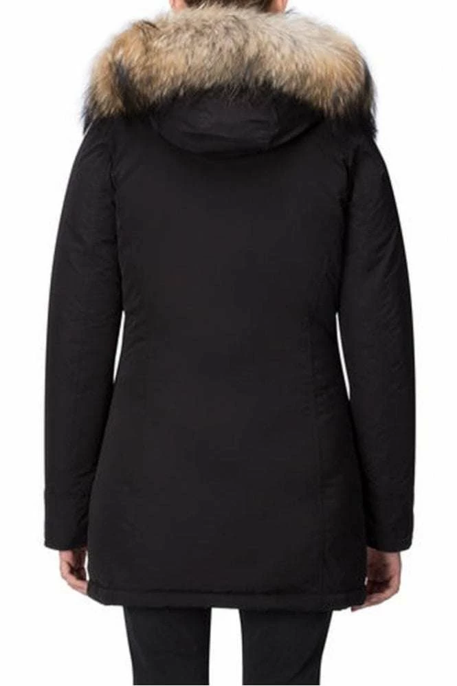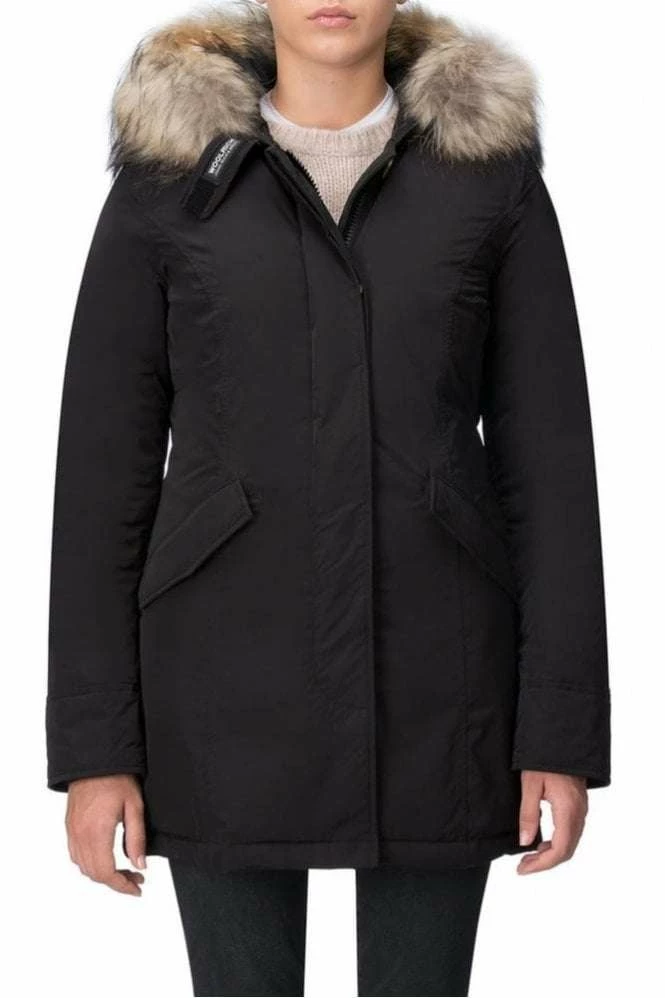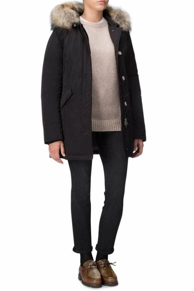 La icónica Arctic Parka, confeccionada en City Fabric hidrófugo, es una prenda elegante y sofisticada. De corte ceñido, cuenta con cuello rematado con pelo, cierre con cremallera y botones, bolsillos insertados con solapa y logotipo bordado en el cuello. El relleno es de pluma 70/30. Un clásico de Woolrich en una versión urban-chic ideal para looks day-to-night. Tejido exterior: 100% Poliéster. Revestimiento: 100% Poliéster. Acolchado: 70% Pluma de Pato Gris 30% Plumas. Piel: Tanuki.