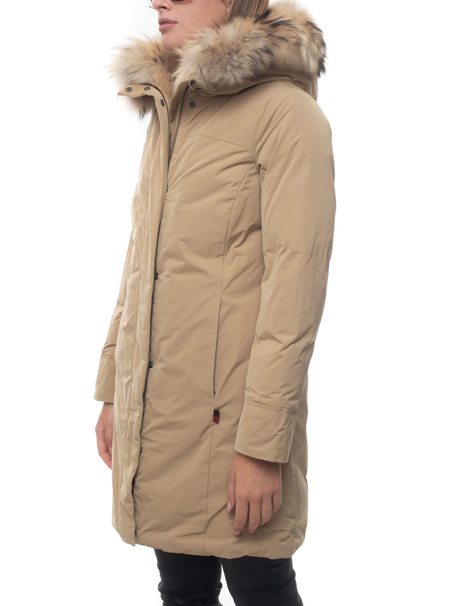 Este abrigo está confeccionado en City Fabric hidrófugo, elegante y sofisticado, con interior y capucha rematada con pelo. Cuenta con corte ceñido, cierre con cremallera y botones, bolsillos insertados en los laterales, logotipo distintivo en el brazo y etiqueta flag en el lateral. El relleno es de pluma 80/20. Una prenda sofisticada y perfecta para dar un toque único a tus looks diarios. Tejido exterior 100% poliéster. Revestimiento 100% poliamida. Acolchado 90% pluma de pato gris 10% plumas. Piel tanuki.