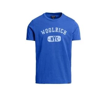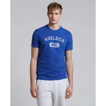 Everyday and distinctive character, this 100% cotton knit t-shirt features a ribbed round neck, a short sleeve and a Woolrich New York logo on the front.