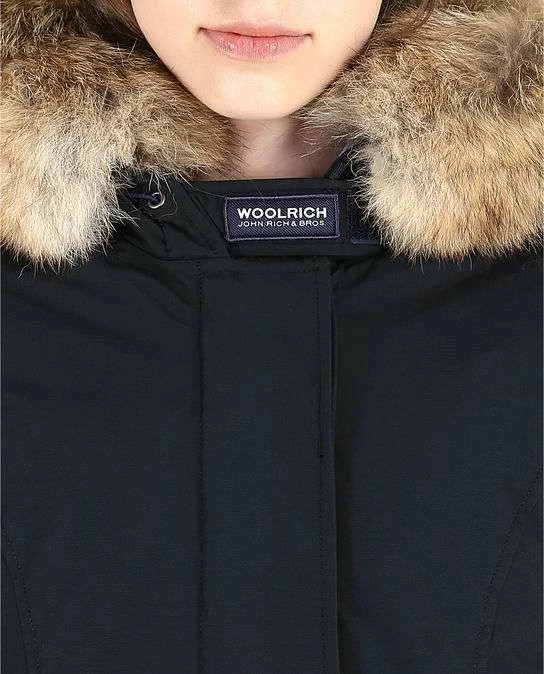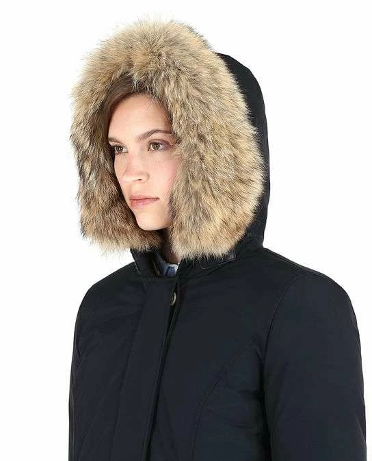 La icónica parca ártica de ajuste ceñido con bolsillos de solapa y piel desmontable de mapache. Confeccionada con el clásico tejido Woolrich con 60 % de algodón y 40 % de nailon, con acabado especial de teflón, muy resistente a la nieve, a la lluvia y al viento. Cierre de cremallera y botones; relleno de plumón de pato 70/30. WWCPS1447-CN02-DKN