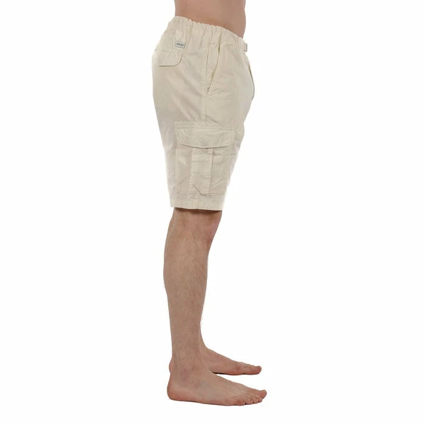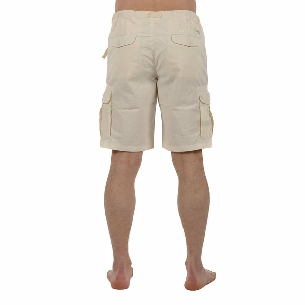 Cargo shorts are made from cotton. Designed with French pockets, flaps at the hips, welt pockets with flaps and hidden snap button on the back. Composition: 100% cotton Color: Beige