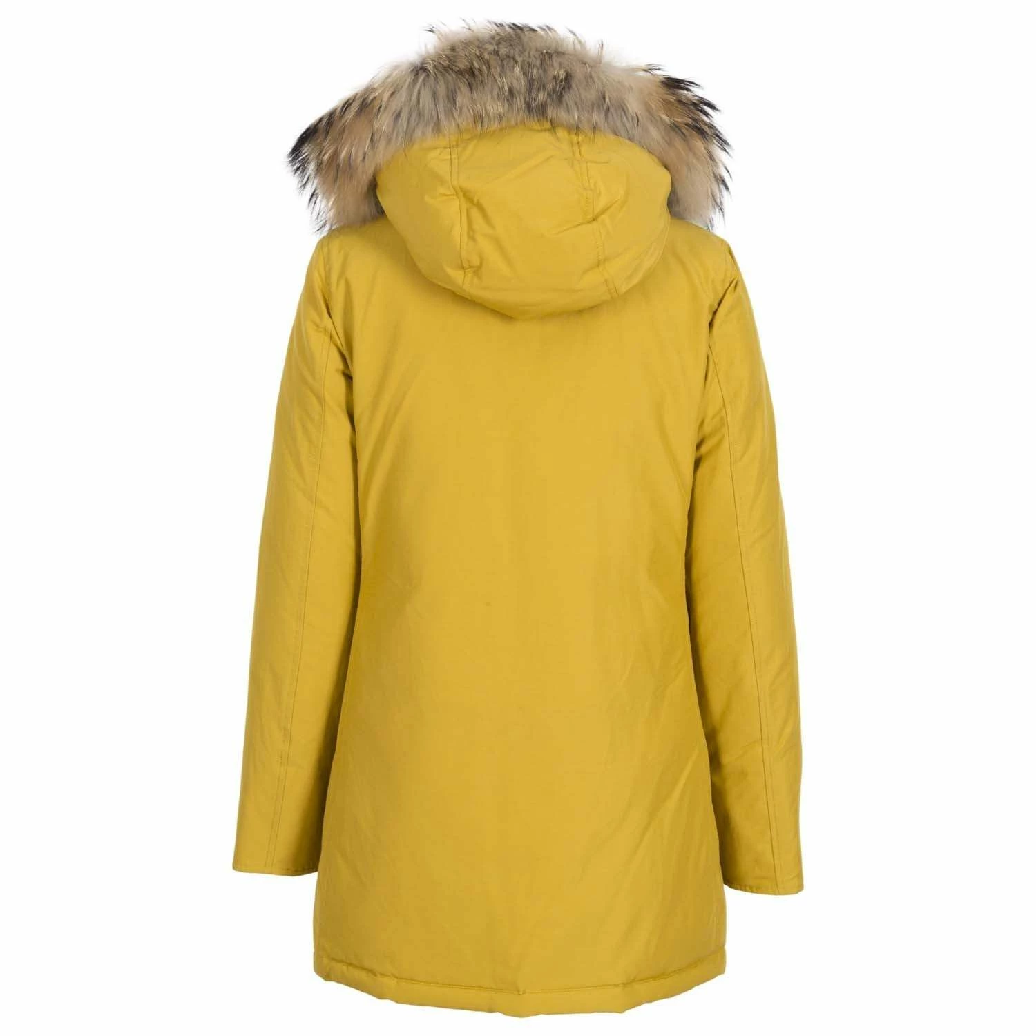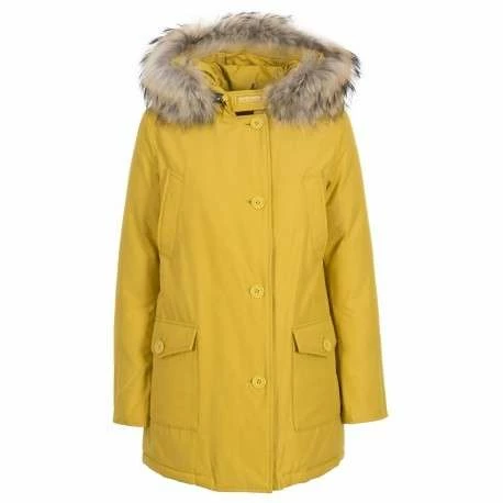 Iconic regular fit arctic parka with handwarmer pockets, flap pockets and detachable raccoon fur. Made of classic Woolrich fabric with 60% cotton and 40% nylon, with special Teflon finish, highly resistant to snow, rain and wind. Zipper and button closure; 80/20 duck down filling.